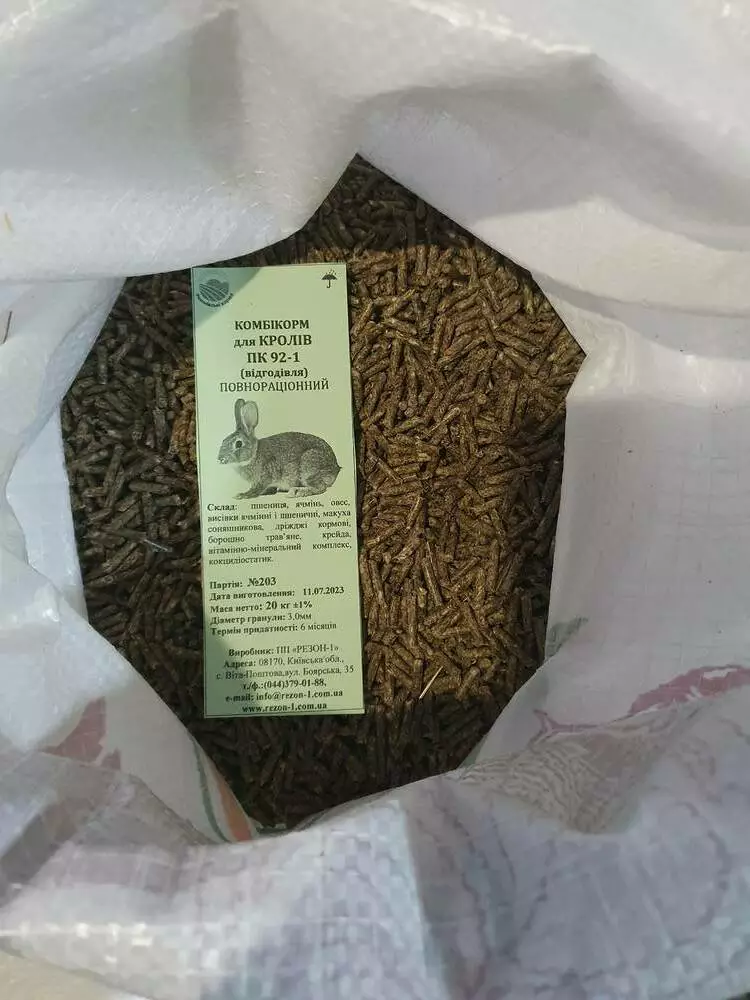 Комбікорм для Кроликів ПК 92-1 застосовується для годівлі з 60 дня. Даний корм для кроликів – це 100% натуральний продукт без гормонів та стимуляторів росту. Випускається у вигляді гранули, діаметром 3мм і довжиною 1,0-1,5см.